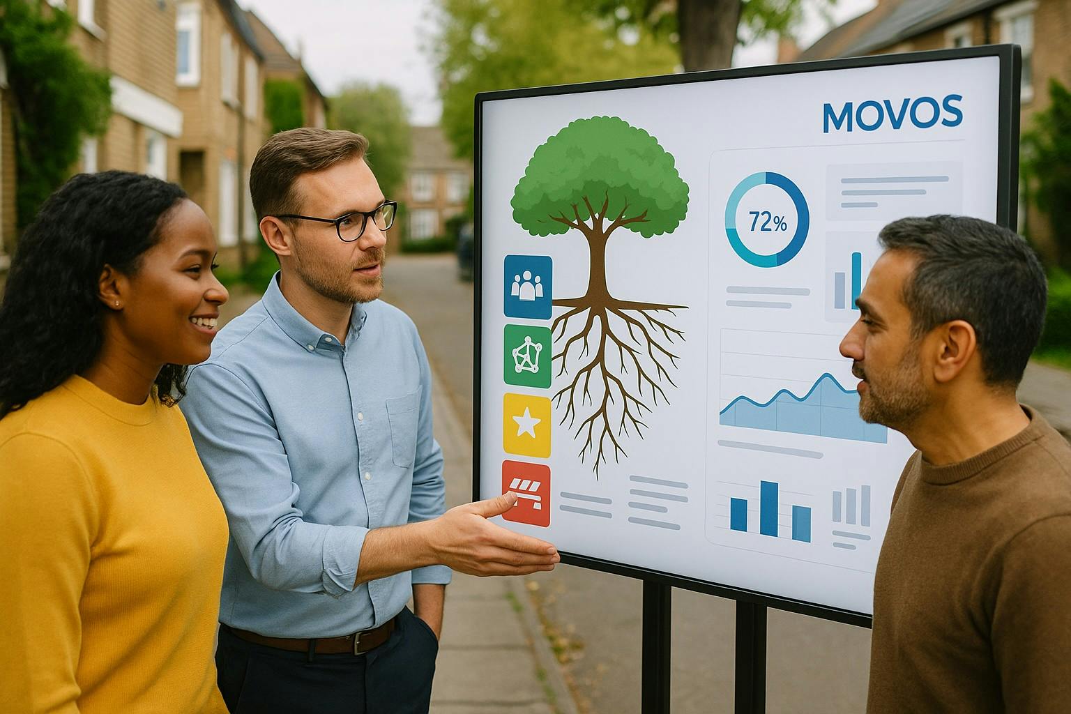 MOVOS brengt verhalen, data en belangen samen en verbindt politiek, beleid en praktijk tot werkbare en zichtbare resultaten. We spreken de taal van bewoners én bestuurders, creëren overzicht in complexe processen en maken samenwerking concreet.